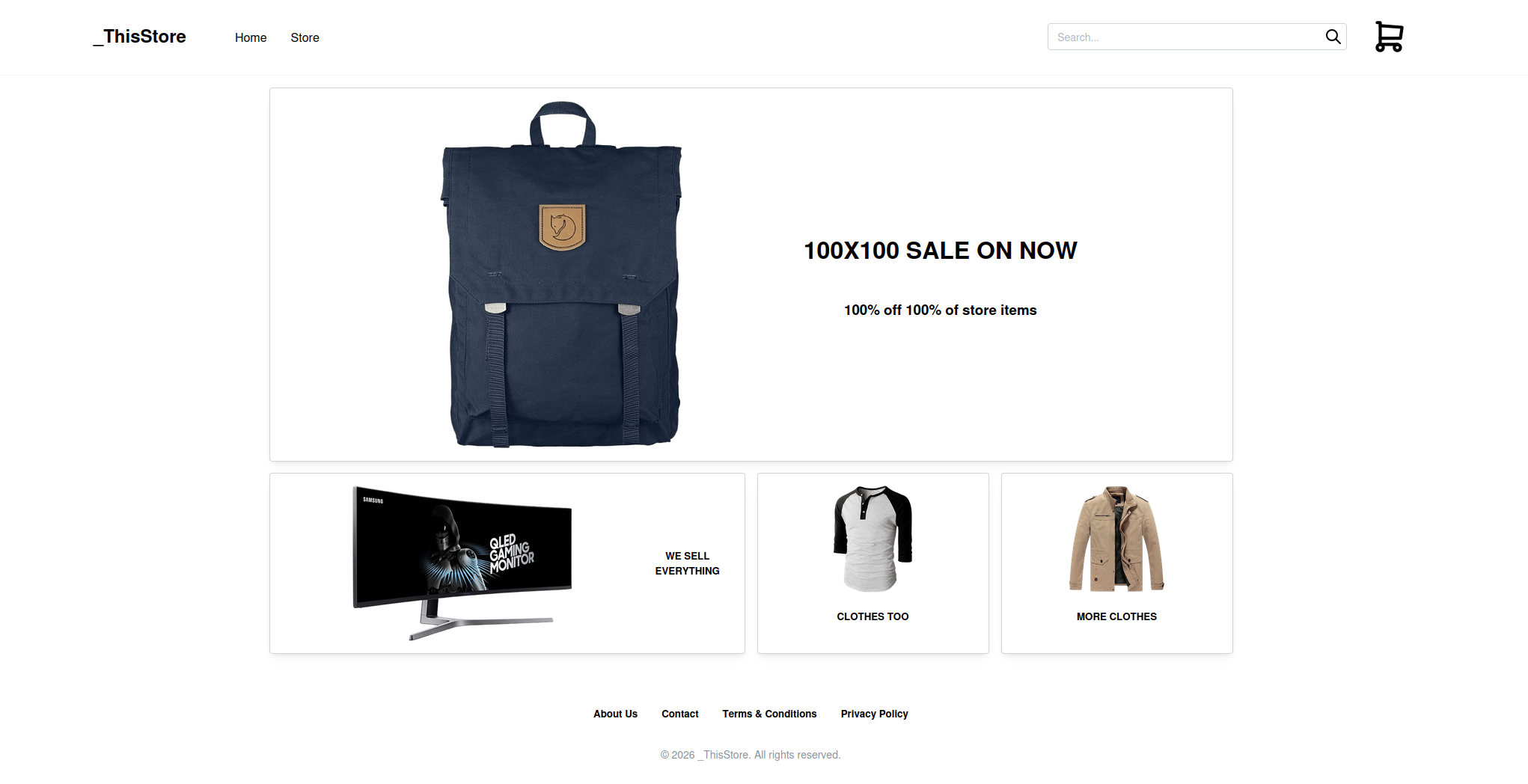 A basic template for an e-commerce store. Functioning catergories and shopping cart